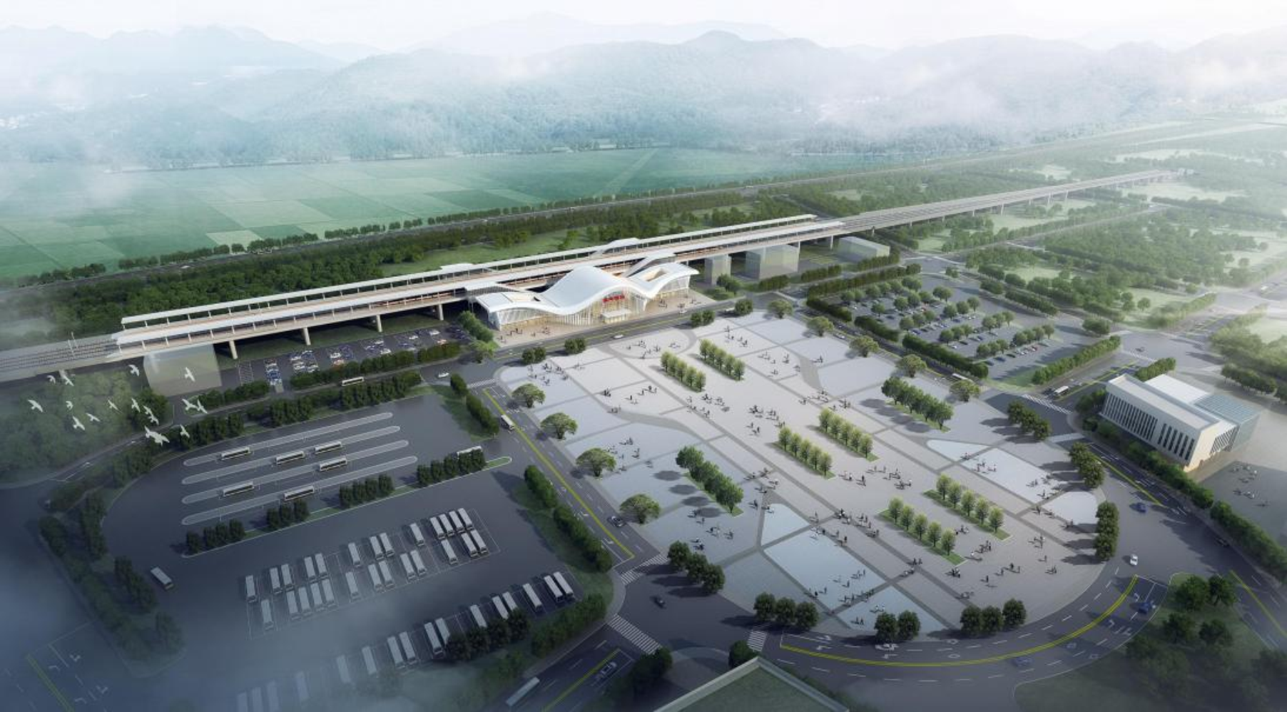 站臺設計理念“東海美玉,無限之環(huán)”,深刻融入了玉環(huán)悠久的海洋文化底蘊與人文特色